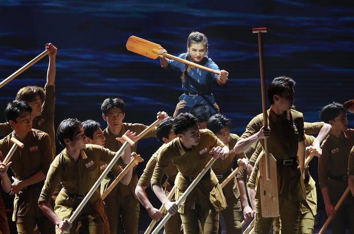 “没有共产党就没有新中国”,演出临近尾声之际,全场起立共同唱响了这首《没有共产党就没有新中国》,这场大型音乐舞蹈史诗在昂扬有力的歌声中拉上了帷幕。