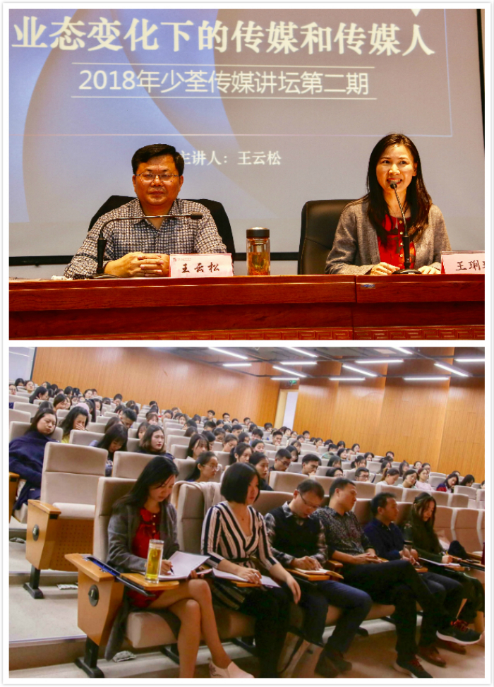 “少荃传媒讲坛”是我院新闻播音系着力打造的一项精品工程。邀请百校名师进校园与师生交流,旨在为学生搭建一个提高精神生活的平台,并为实现我院全面育人、培育全人、培养“德艺双馨 知行合一”的当代大学生的目标提供智力支持。(汪博 江雅洁 马艳萍/文 许洋洋/图)