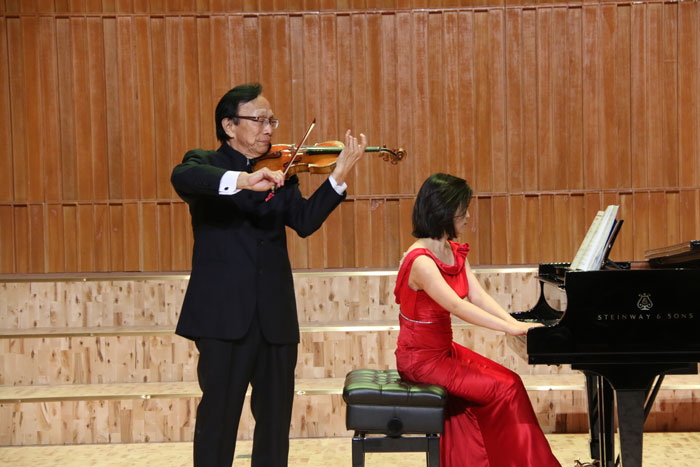 10月10日晚7时,学院音乐南楼音乐厅座无虚席,著名小提琴演奏家、教育家、中央音乐学院教授刘育熙(刘北茂之子)给我院师生带来了一场小提琴独奏音乐盛宴。学院党政领导班子成员与省内外专家学者、全校师生一同聆听了音乐会。