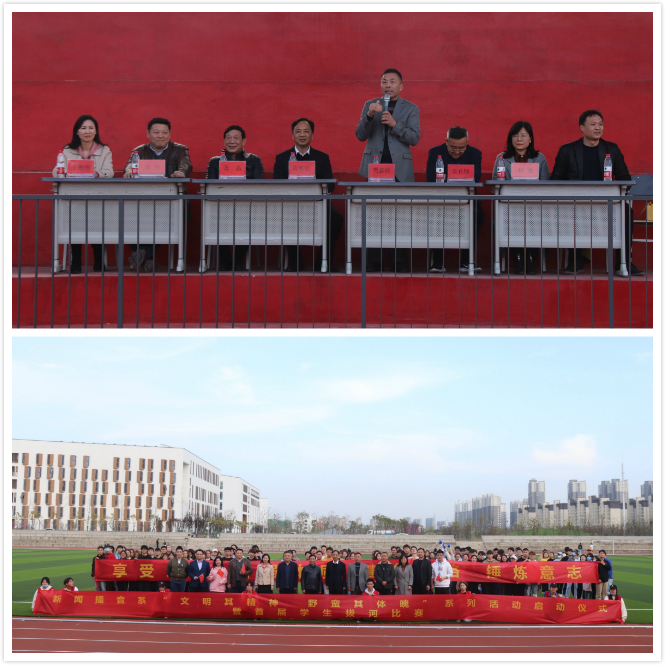 3月24日,新闻播音系在体育场举行“文明其精神  野蛮其体魄”系列活动启动仪式暨首届学生拔河比赛。校党委书记周明洁,党委副书记、院长樊嘉禄,行政负责人张晶,宣传部部长吴孔铎,学生处处长刘长华,公共教学部主任杨丽,学生处副处长、校团委书记陈明,新闻播音系党总支书记、主任王琍琍参加启动仪式。仪式由新闻播音系党总支副书记、副主任张井水主持。