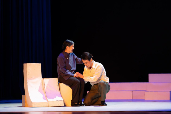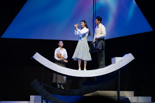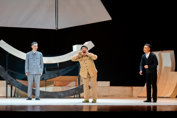 此次展演原创话剧《抉择》由我校戏剧学院五十余名师生历时五个多月潜心创作、反复打磨完成。以杨振宁、许鹿希、邓志典等重要人物的回忆为叙事支点,围绕“两弹元勋”邓稼先的奋斗人生,构建起多维交织的戏剧空间。剧中通过邓稼先与杨振宁跨越时空的深厚情谊、工程兵刘春光的英勇事迹、国际友人寒春对原子弹的深刻反思,以及亲人之间的细腻情感等,串联起一段段感人至深的家国故事。这一叙事结构不仅艺术化地呈现了科技工作者在人生关键节点的毅然抉择,更将他们隐姓埋名、以身许国的崇高精神与鲜活真实的情感世界融为一体,实现了历史真实与艺术表达的有机统一。
