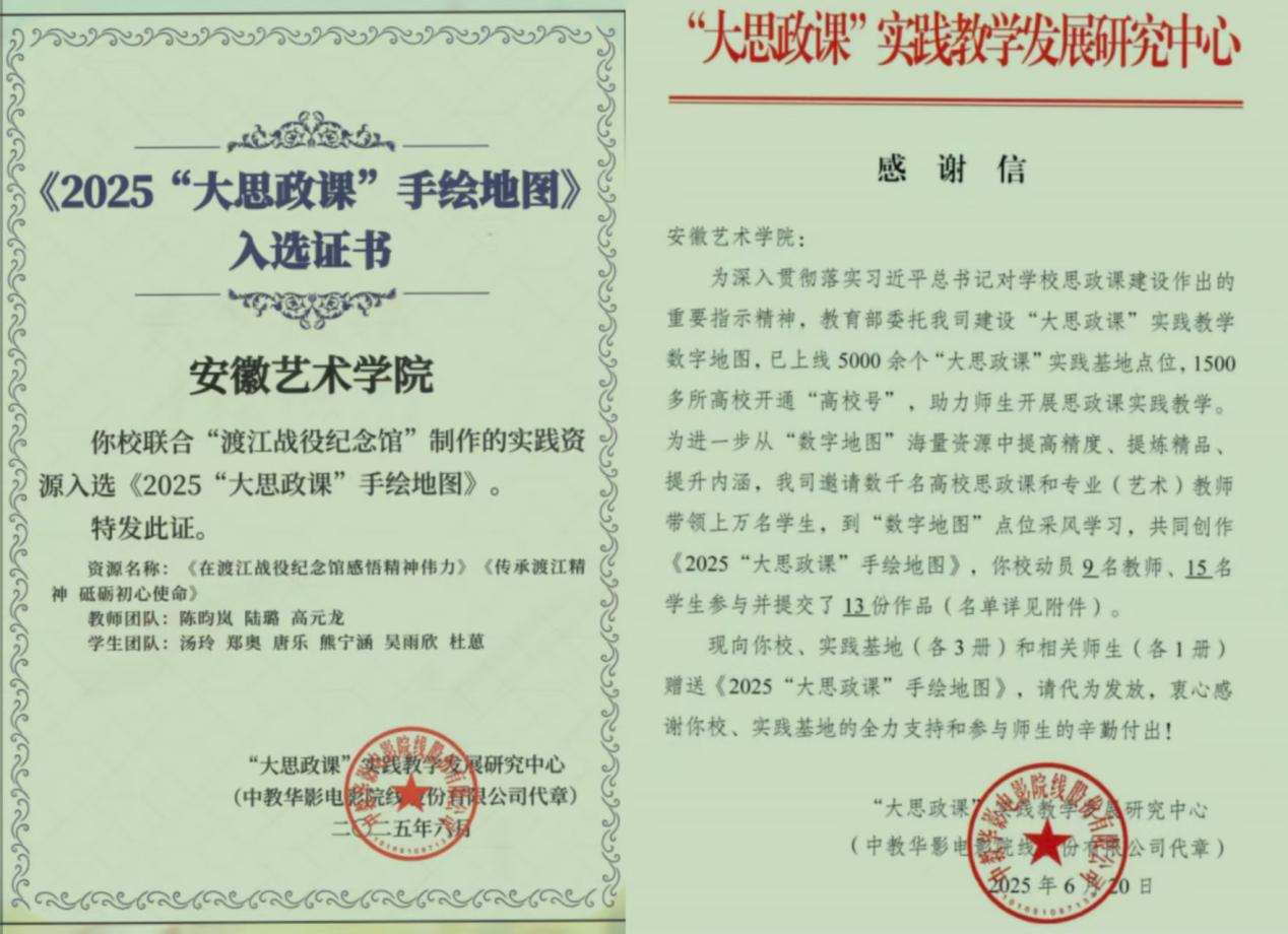 近日,教育部社会科学司指导的《2025“大思政课”手绘地图》项目公布入选名单,由我校教师陈昀岚、陆璐、高元龙共同指导,汤玲、郑奥、唐乐等六位同学联合录制的实践教学资源《在渡江战役纪念馆感悟精神伟力》和《传承渡江精神 砥砺初心使命》成功入选,作品已正式接入教育部“大思政课”实践教学数字地图平台,面向全国高校师生展播。