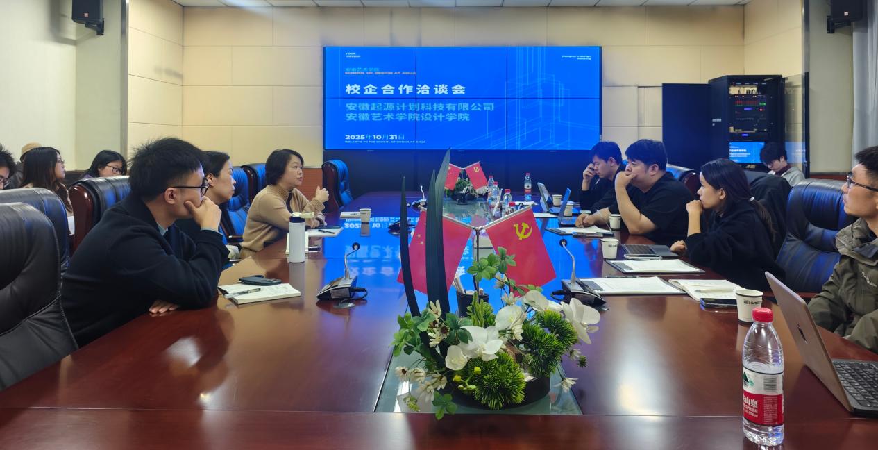 10月31日下午,安徽起源计划科技有限公司与设计学院校企合作洽谈会在设计楼第一会议室举行,安徽起源计划科技有限公司总经理孙羽一行莅临交流,设计学院党总支书记俞璋凌、数字媒体艺术专业师生代表共同参会,会议由俞璋凌主持。会上,俞璋凌对孙羽总经理一行...