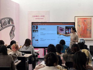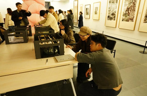 在美术馆五楼的展厅中,一部分学生们专注地为模特进行黄梅戏传统妆造,另一些学生则以《女驸马》《天仙配》等经典剧目为蓝本,设计了多组微缩舞台模型;道具设计课程展示了学生们亲手制作的戏曲道具;黄梅戏专业的学生则通过快闪的形式向大家展示戏曲的另一面,这些丰富的活动既有传统韵味,也不乏现代审美元素的融入。