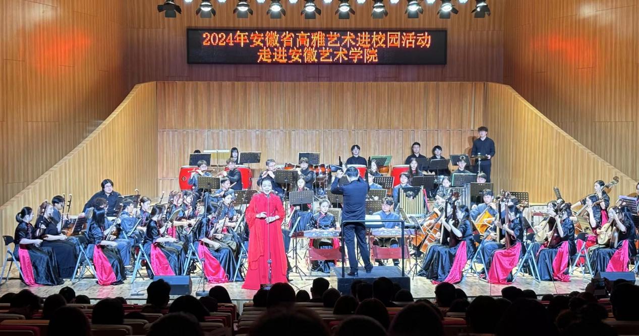 2024年10月15日下午,为庆祝中华人民共和国成立75周年,弘扬中华优秀传统文化,丰富校园文化生活,安徽省教育厅主办,安徽师范大学承办的“庆祝中华人民共和国成立75周年——暨2024年安徽省高雅艺术进校园活动”在我校音乐厅成功举办。