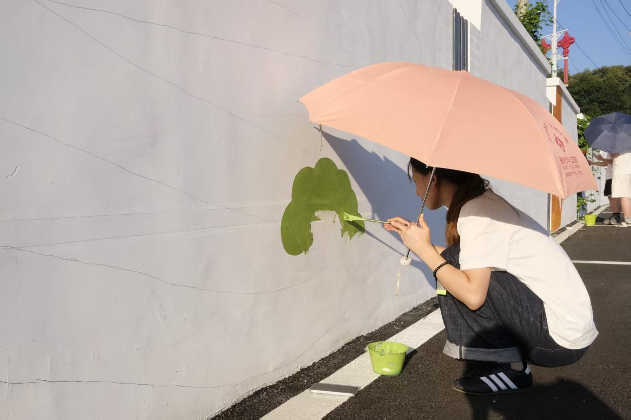 每天清晨五点半,中国画专业的韩娜等同学便按捺不住创作的冲动,早早地起床投入创作,直至傍晚太阳落山后仍不停歇。“虽然早起很辛苦,但看到自己的画笔能让一面面白墙焕发生机,所有的付出都值得。”韩娜说道。同学们表示,来到金寨县果子园乡,首先对乡情和当地的特色和文化进行了深入的调研,在墙上的每一笔每一画都融入着情感,特别希望这些作品能够给这个乡村带来“年轻态”的表达。